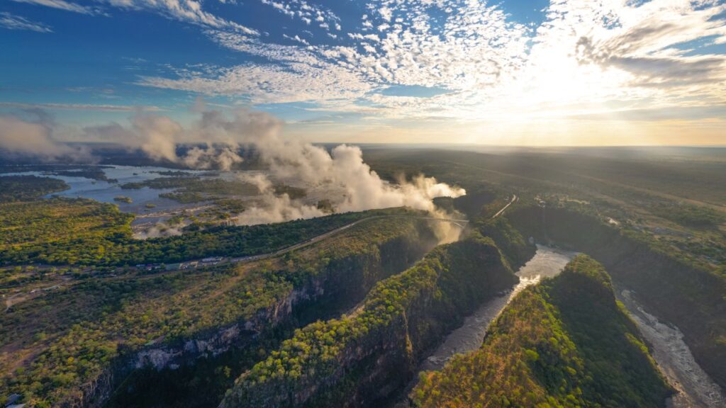 Experience Victoria Falls from a breathtaking new perspective on a 10–15 minute helicopter flight. Soar above the mighty Zambezi River and witness the full scale of the Falls, dramatic gorges, and surrounding wildlife. This unforgettable aerial adventure offers incredible photo opportunities and a true “Flight of Angels” experience.